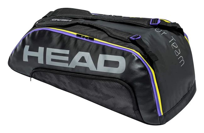 Le volumineux sac à raquettes noir de Head Tour Team 9R Supercombi vous offre suffisamment d’espace si vous avez besoin de transporter jusqu’à 9 raquettes de tennis.